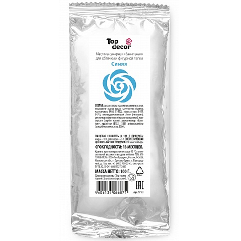 Способ применения: необходимое количество мастики предварительно размять на сухой, слегка подпыленной сахарной пудрой поверхности, до мягкой пластичной консистенции.
