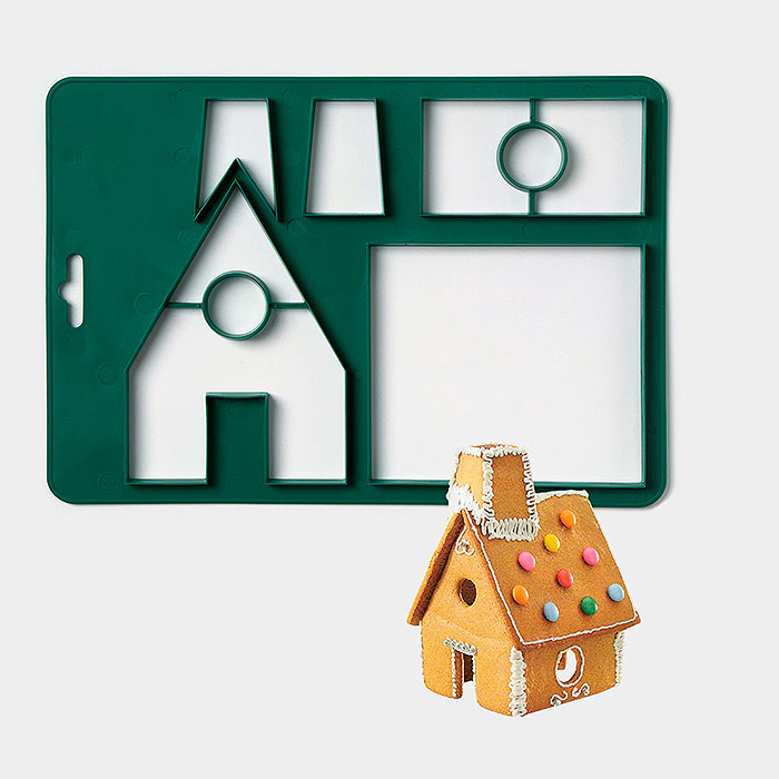 С помощью этого необычного резака для печенья и пряников можно вырезать изделие из листа теста, а ещё оставить на нём интересный отпечаток. Готовый пряничный домик можно покрыть глазурью, посыпкой, прорисовать кондитерской краской детали.